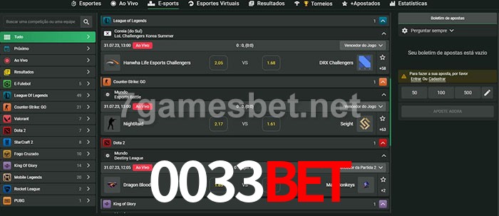 O 0033Bet oferece uma grande seleção de opções de apostas em e-sports com probabilidades competitivas